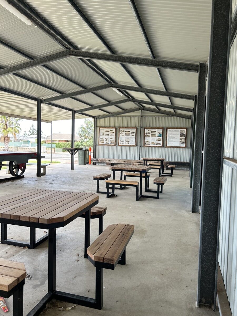 The drive through 'Travellers Rest' is situated along the foreshore opposite the jetty and playground. It has great parking and drive through for caravans. Toilets and picnic area under shade is available with tables and chairs, district maps and historical boards. A good place to park the caravan and explore Tumby Bay with shopping, cafes, bakery and jetty all within short walking distance.